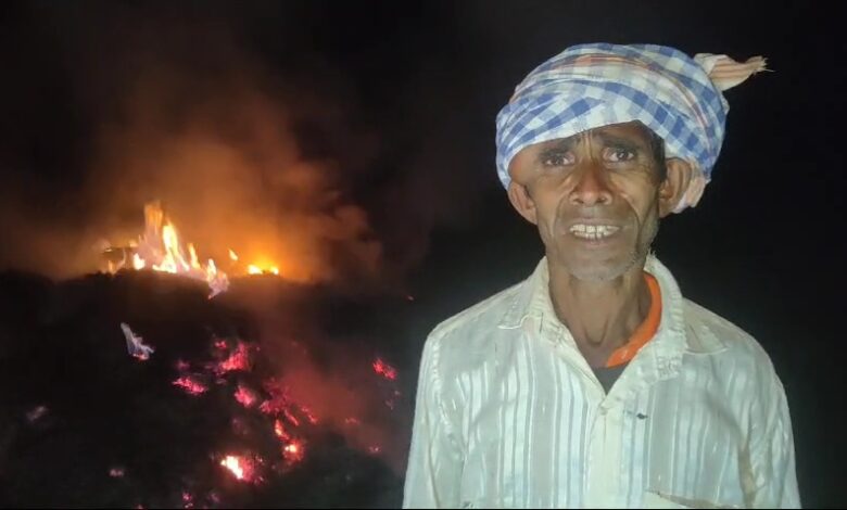खलिहान में लगी आग 200 धान के बोझ जलकर खाक