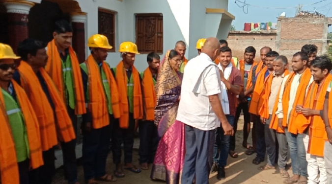 छठ पूजा के अवसर पर सिमरी पंचायत के मुखिया ने सफाई कर्मियों को अंग वस्त्र देकर किया सम्मानित