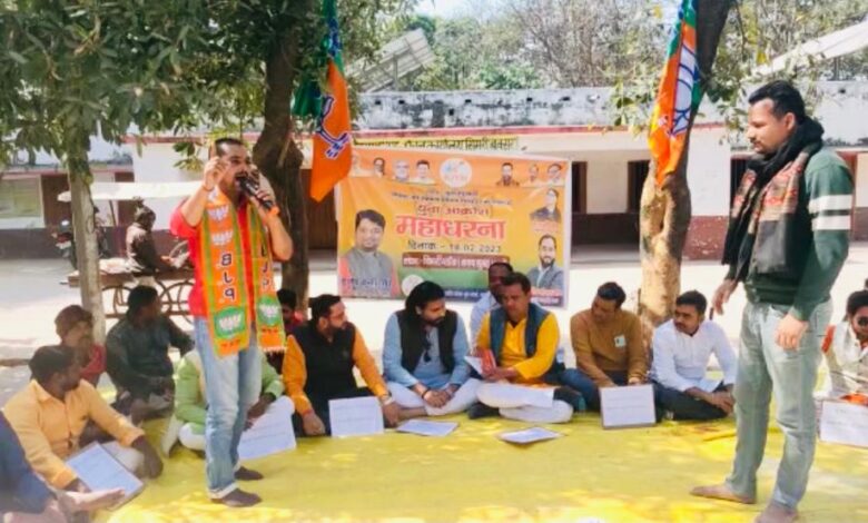 सिमरी प्रखंड में भाजपा युवा मोर्चा के कार्यकर्ताओं ने किया महा धरना कार्यक्रम का आयोजन