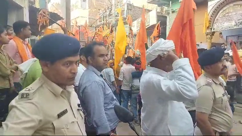 सिमरी के सुखदेव ब्रह्म स्थान से सिमरी बाजार होते हुए कारुवीर ब्रह्म स्थान तक बजरंग दल के युवाओं ने निकाला शोभायात्रा