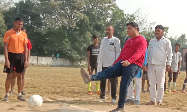 सिमरी के खेल मैदान में अंडर 40 फुटबॉल के फाइनल मैच में LRS स्कूल के खिलाड़ियों ने मध्य विद्यालय सिमरी के खिलाड़ियों को हराया