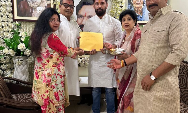 राष्ट्रीय अध्यक्ष चिराग पासवान ने अरुण भारती को सिंबल प्रदान