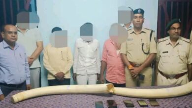देवकुली गांव से पुलिस व वन विभाग की टीम ने हाथी के दो दांत के साथ पांच को किया गिरफ्तार