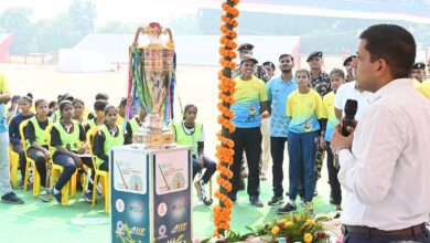 डीएम और अधिकारियों के मौजूदगी में पुष्प वर्षा कर निकली गई,,ट्रॉफी गौरव यात्रा