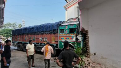 अनियंत्रित ट्रक ने मारी होटल की दीवार में जोरदार टक्कर,,हादसा टला